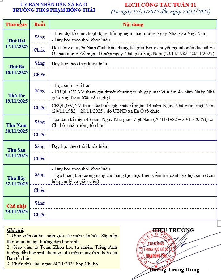 • Lịch công tác tuần (từ ngày 17/11/2025 – 23/11/2025)